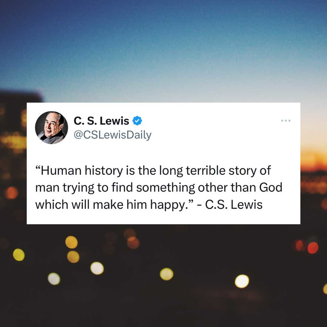 "Human history is the long terrible story of man trying to find something other than God which will make him happy."