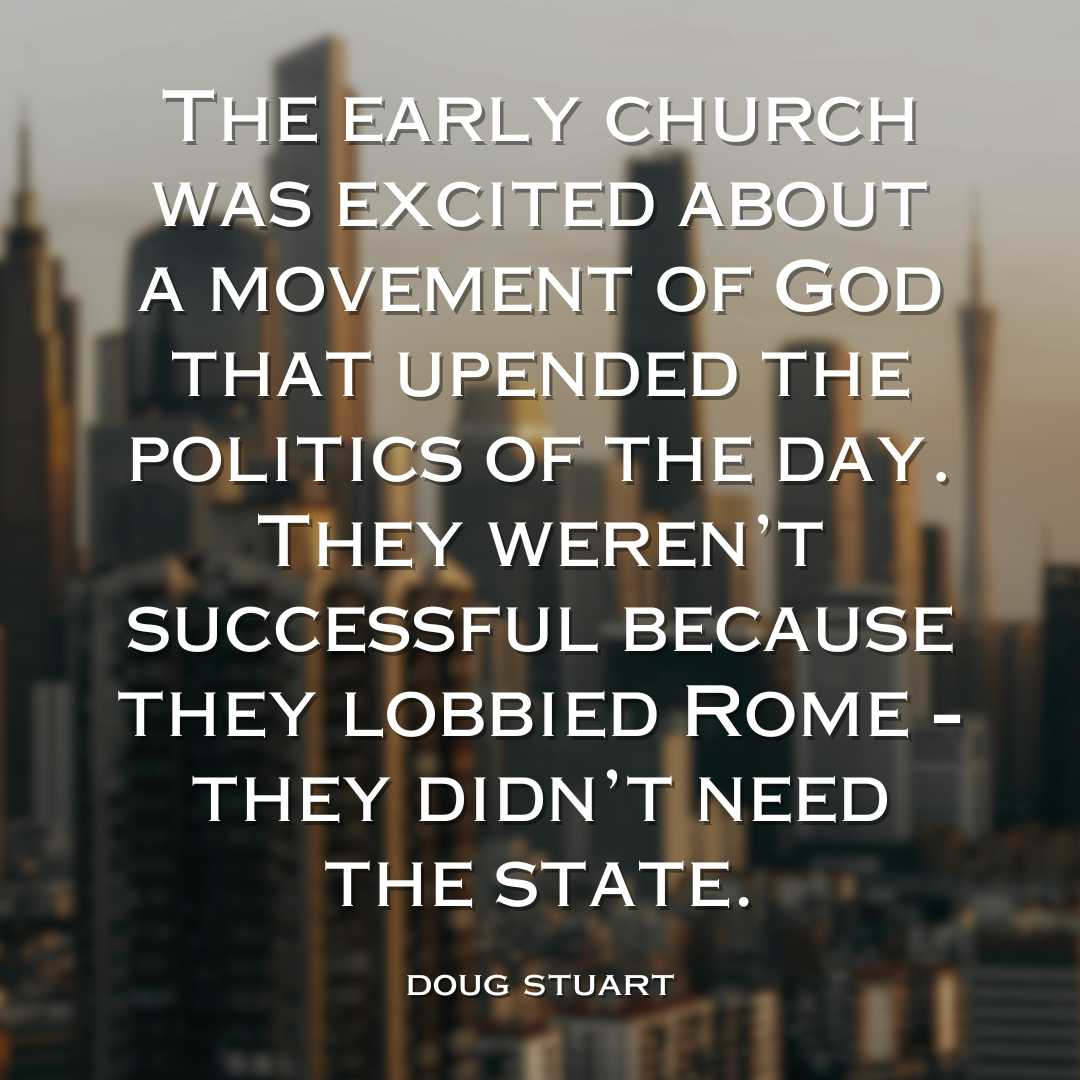 Early Christians didn’t need the government to enforce their values on others - everything was voluntary, and in many ways this had to be the case. The state is such a flawed system that they completely bypassed it and used their witness and actions to spread the kingdom.